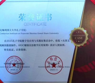 18.11.2025Институт Конфуция при Гомельском государственном университете имени Франциска Скорины укрепил свой международный статус благодаря успешному участию в конкурсе, проходившем в рамках Всемирной конференции по китайскому языку в Пекине. Методическая разработка Института «От текстов и видео до микроуроков: применение AIGC в обучении китайскому языку» была высоко оценена и вошла в…