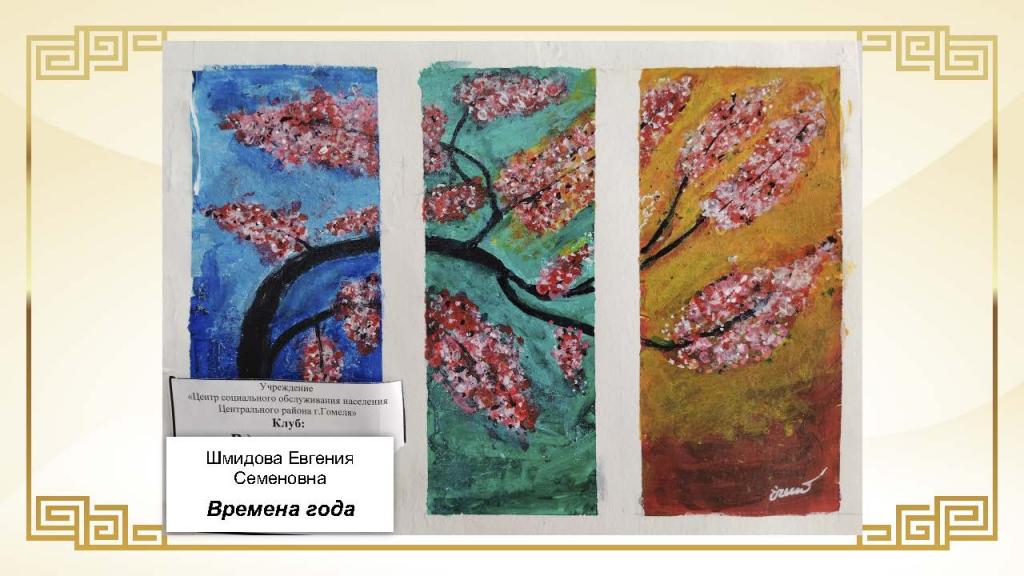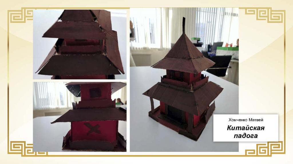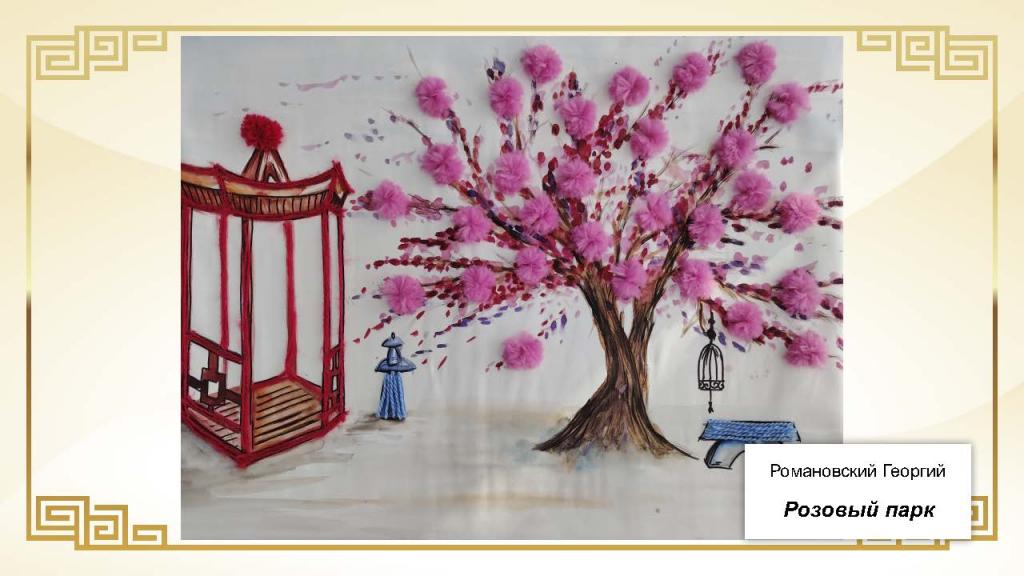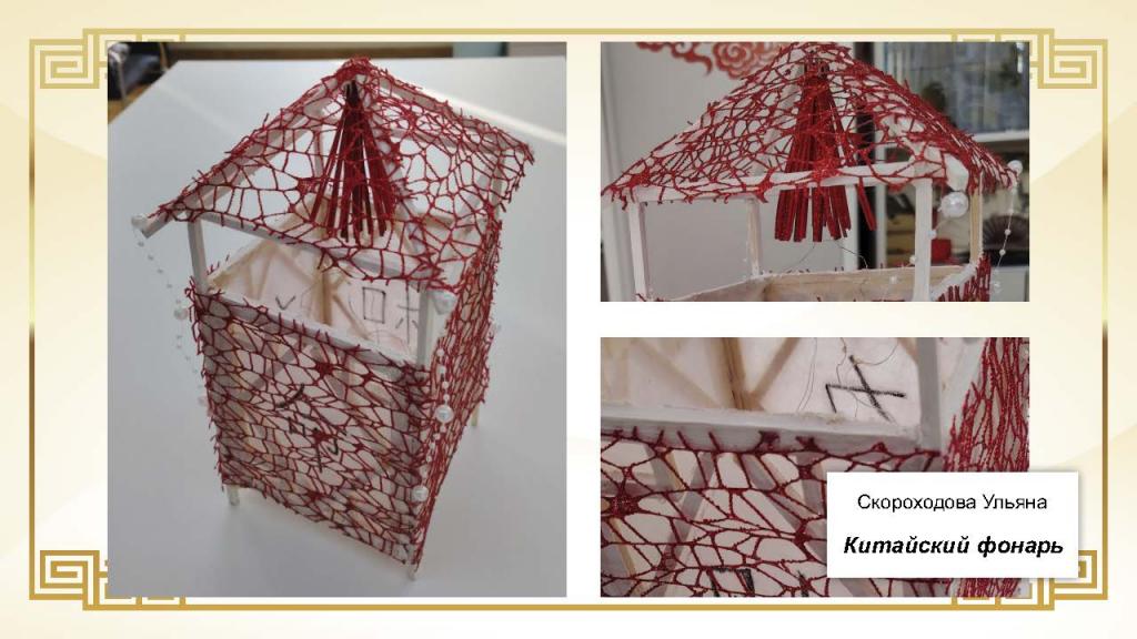 Особое внимание гостей привлекли оригинальные ручные поделки, отличавшиеся сложностью исполнения и художественной выразительностью. Онлайн-голосованием был определён приз зрительских симпатий, который завоевала Рожкова Алина за работу «Пагода акварелью».