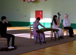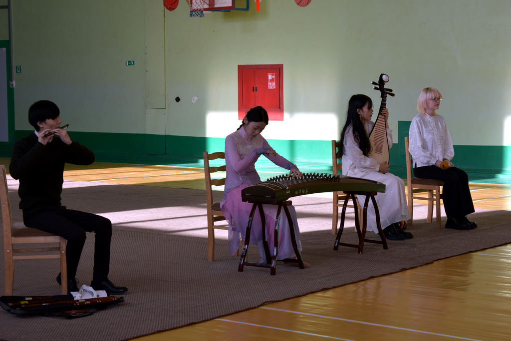 Праздничную атмосферу мероприятия дополнили творческие номера преподавателей китайского языка: музыкальная композиция на традиционных китайских инструментах и танец с драконами в национальных костюмах.